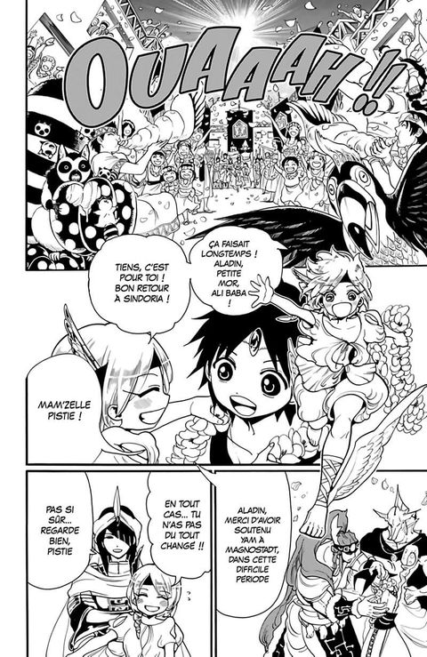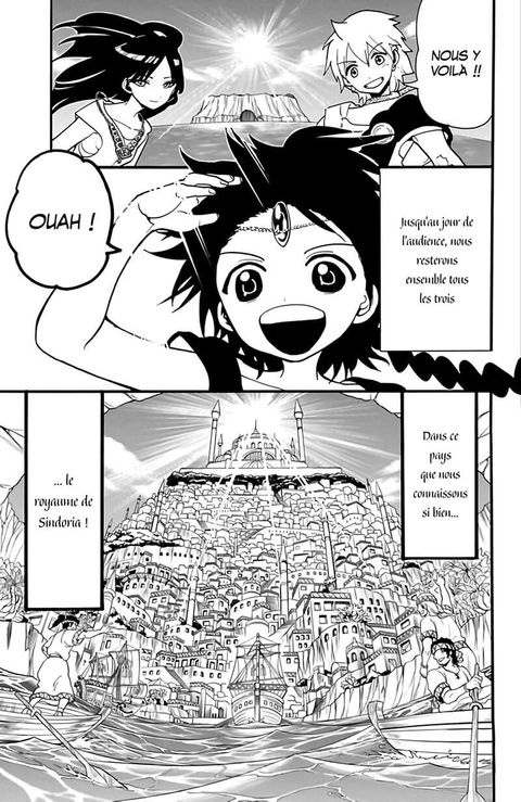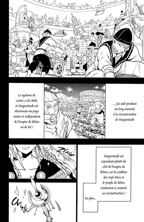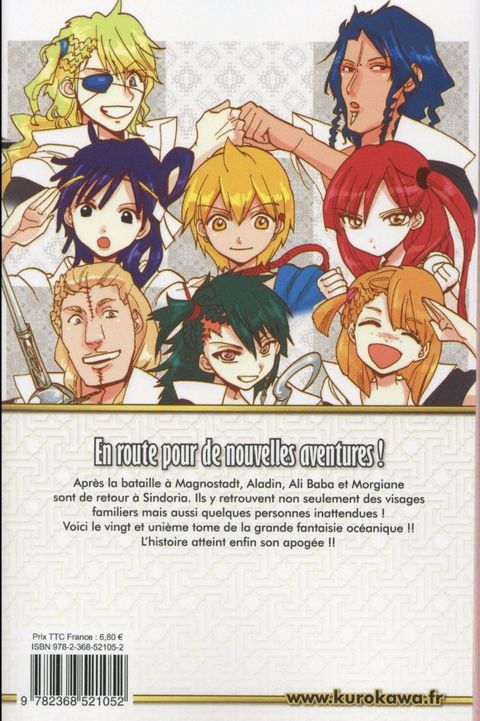 En route pour de nouvelles aventures ! Après la bataille à Magnostadt, Aladin, Ali Baba et Morgiane sont de retour à Sindoria. Ils y retrouvent non seulement des visages familiers mais aussi quelques personnes inattendues ! Voici le vingt et unième tome de la grande fantaisie océanique !! L'histoire atteint enfin son apogée !!