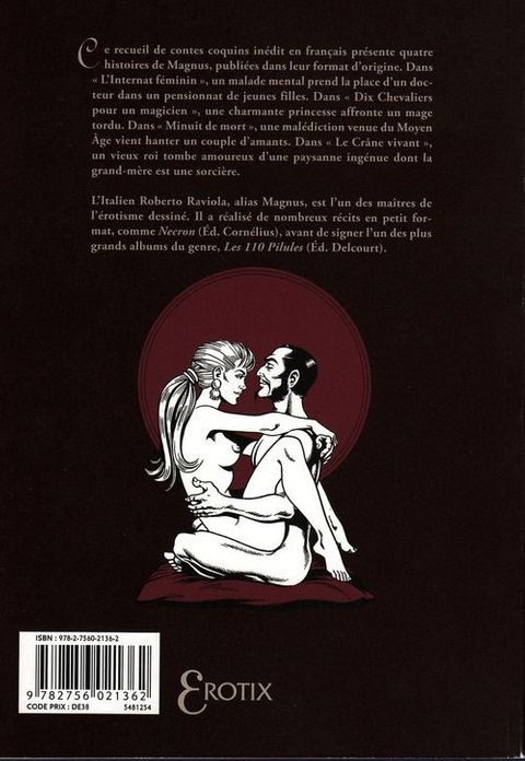 Un gangster en fuite prend la place d'un docteur dans un pensionnat de jeunes filles ; pour les beaux yeux d'un magicien, une charmante princesse affronte un mage tordu ; une affreuse malédiction venue du Moyen Âge vient hanter deux amants ; un vieux roi tombe amoureux d'une paysanne ingénue dont la grand-mère était une sorcière... Quatre contes érotiques de Magnus, inédits en français