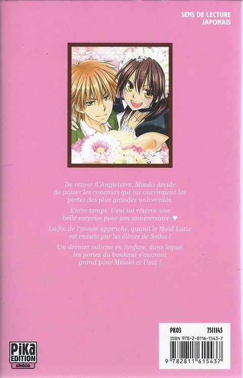 De retour d'Angleterre, Misaki décide de passer des concours qui lui permettraient d'intégrer les plus grandes universités. Entre temps, pour son anniversaire, Usui lui réserve une belle surprise ! La fin de l'année approche, et le Maid Latte est envahi par les élèves de Seika ! Un dernier volume en fanfare qui devrait nous offrir le happy-end tant attendu.