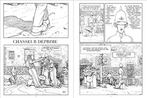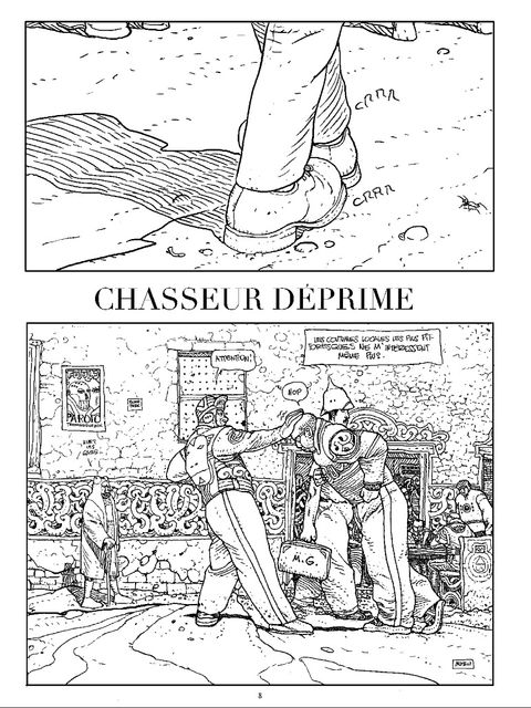 La première apparition du Major Grubert se perd dans la nuit des temps... le problème, c'est qu'on ne s'est pas très bien à quel moment de la nuit l'événement a réellement eu lieu... était-ce d'ailleurs la nuit ?..les temps étant ce qu'ils sont de par l'univers, on doute que la notion de nuit et de jour y subsiste, à moins d'adopter l'hypothèse de la lumière divine et de son ombre portée... Et c'est vrai qu'en se drapant d'éternité le major prête à une sorte d'olympe new-age où la magie du désir côtoie l'abîme déprimant de la satisfaction lasse. Par bonheur, Moebius en s'attelant à la tâche impossible de rendre compte de ces déambulations aléatoires, nous permet d'entrevoir l'univers spatial du rêve où le temps de la nuit est aveuglé par la lumière d'un soleil exclusivement onirique. Car en effet, c'est de rêve qu'il s'agit là... uniquement de rêve.