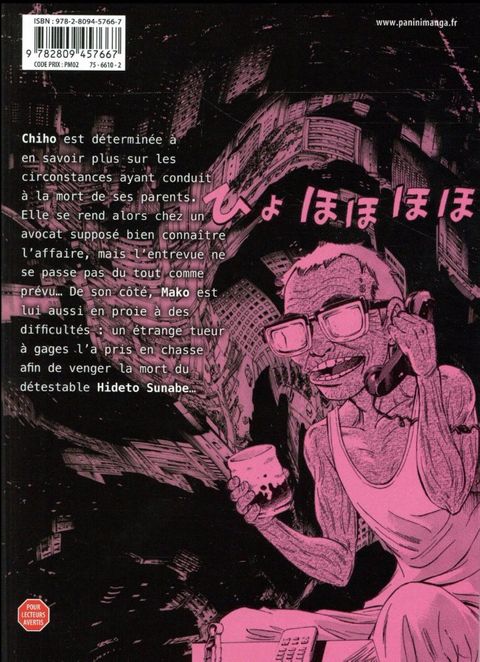 Chiho est déterminée à en savoir plus sur les circonstances ayant conduit à la mort de ses parents. Dans l'espoir de trouver des pistes pour remonter le cours des événements, elle se rend chez un avocat supposé bien connaître l'affaire. Mais l'entrevue ne se passe pas du tout comme prévu... De son côté, Mako est lui aussi en proie à des difficultés. Un étrange tueur à gages l'a pris en chasse afin de venger la mort du détestable Hideto Sunabe. Rapidement, la course-poursuite qui s'engage entre les deux hommes prend des airs de jeu macabre...