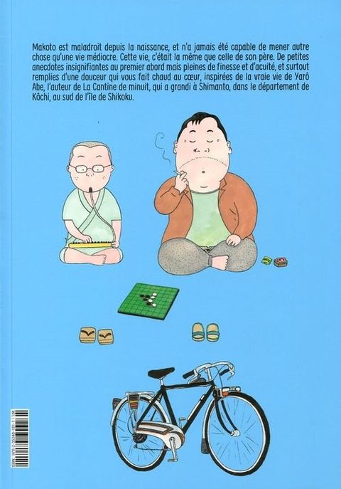 Makoto est maladroit depuis la naissance, et n’a jamais été capable de mener autre chose qu’une vie médiocre. Cette vie, c’était la même que celle de son père. De petites anecdotes insignifiantes au premier abord mais pleines de finesse et d’acuité, et surtout remplies d’une douceur qui vous fait chaud au cœur, inspirées de la vraie vie de Yarô Abe, l’auteur de La Cantine de minuit, qui a grandi à Shimanto, dans le département de Kôchi, au sud de l’île de Shikoku.
