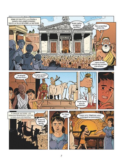 Harald et son frère aîné, Ursius, sont les esclaves du flamine de Jupiter, le grand prêtre de Rome. Celui-ci est bon avec eux et souhaite les affranchir. Mais un matin, les enfants découvrent un aigle blessé dans le temple. C'est l'aigle de Jupiter ! Ce mauvais présage indique que Rome est en danger et seuls les deux garçons semblent pouvoir sauver la ville et ses habitants...