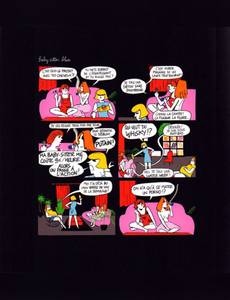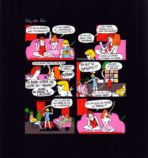 Nom d'une coupe menstruelle ! Par la Sainte Chlamydia ! C'est quoi ce bordel ? Depuis quand une autrice de bande dessinée peut montrer des meufs poils des jambes à l'air et seins apparents qui parlent de sodomie, comparent leurs godes et se moquent du yoga ? Toujours dans l'air du temps, et intéressée par la chose, Nine Antico nous brosse le portrait en huis-clos d'une bande de gonzesses sérieusement décomplexées, et nous agite sous le nez la vraie nature des filles, qui pour de vrai pètent, se droguent, parlent librement de leur corps et en rigolent. Le trait d'habitude vintage de Nine Antico se modernise dans Maléfiques de couleurs trash à l'image de ses heroïnes, résolument anti girly.