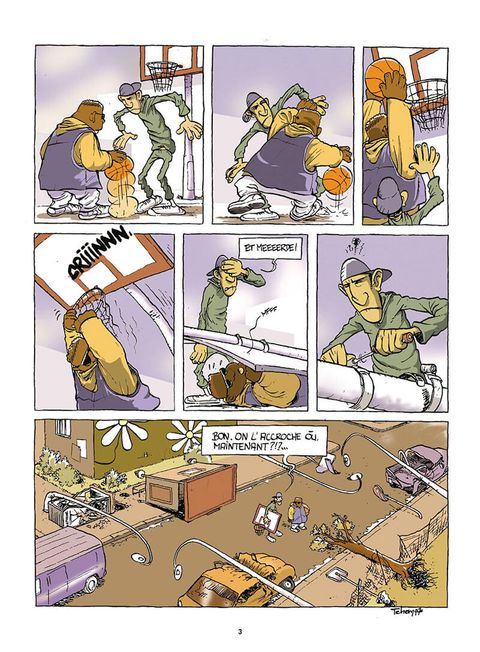 Vue du côté obscur, la Cité des Pâquerettes c'est la zone ! Il a fallu brûler dix bagnoles pour obtenir un terrain de basket, y a cinq racistes par palier, y a autant de flics que de lampadaires et les bancs publics sont squattés par de très mauvaises fréquentations... Si on positive, la Cité des Pâquerettes c'est les potes, les concerts improvisés dans les cages d'escaliers, les matchs de foot dans la cour du LEP, les BD gratos à la bibliothèque et le bronzage à la piscine... Mais les Pâquerettes, c'est avant tout la cité de Dooley, Jeff et Malika, trio black-blanc-beur qui traîne ses baskets entre les barres et les bacs à sable à la recherche d'un fou rire. Et les occasions de rigoler ne manquent pas quand il fait beau etqu'on a une dispense de gym...