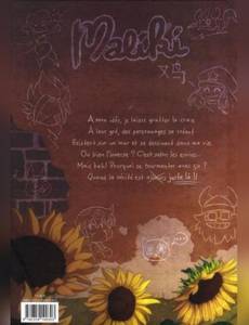 Lasse de se voir toujours dessinée n'importe comment, Maliki a décidé il y a cinq ans de se dessiner elle-même ! Entre anecdotes, souvenirs, délires et instantanés, la jeune Maliki puise dans la source inépuisable du quotidien, le sel de ses chroniques hebdomadaires. Au fil des années et d'un succès grandissant, la galerie des personnages s'est enrichie de quelques figures incontournables : Jonn, Fang, Electrocute, Ladybird et bien entendu Fëanor et Fleya, ses deux chats. Retrouvez la sélection de ses meilleures chroniques de l'année écoulée dans un recueil indispensable, disponible en édition simple et collector !