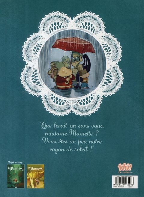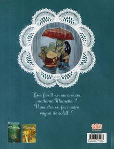 Les nouvelles aventures tendres et drôles d´une mamie pas comme les autres ! Qui a dit que la vie des vieilles dames était ennuyeuse ? Pas Mamette en tout cas. Il faut dire qu´elle a beaucoup à faire pour remonter le moral de ceux qui l´entourent ! Entre son grand fiston qui vient d´être licencié, le petit Maxou qui a des problèmes à l´école, Madame Vidal qui a la grippe, sans oublier la cynique Mademoiselle Pinsec qui se met à lire des romans d´amour, rien ne tourne rond en ce moment. Mais dans la grisaille de l´automne, c´est toujours dans le coeur de Mamette que l´on peut trouver du soleil ! Entre drôlerie et émotion, retrouvez le troisième tome des aventures de Mamette, une série pour les jeunes et les moins jeunes, à dévorer de 8 à 88 ans.