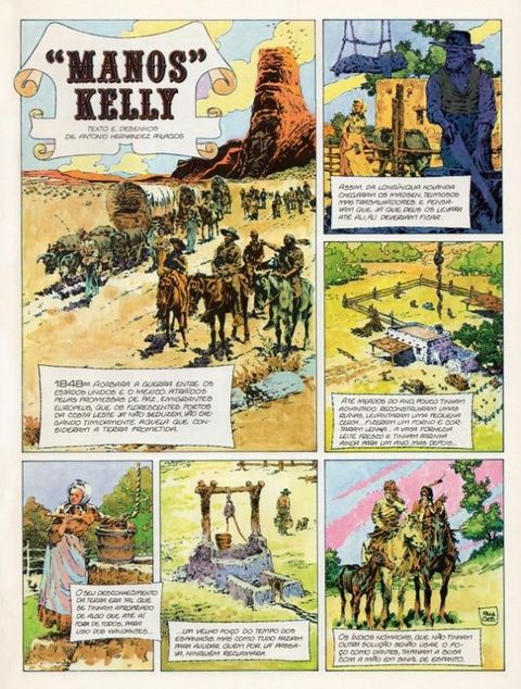 Cette intégrale de 216 pages reprend l'intégralité des aventures de Manos Kelly, ce western superbement dessiné par Antonio Hernandez Palacios, qui l'a notamment fait connaître en dehors de l'Espagne. Ce sont ses fréquents voyages en Amérique qui sont à l'origine de l'idée de réaliser une BD consacrée à la présence espagnole en Amérique du Nord. En s'intéressant plus à l'histoire réelle de l'Ouest américain qu'à ses mythes ou archétypes, Palacios recherche bien sûr un esthétisme dans chaque case, mais aussi une rigueur historique et ethnologique. Si le premier épisode de Manos Kelly date du tout début des années 1970, il reviendra à cette série en 1985. Cette bande dessinée reprend cinq aventures de Manos Kelly, dont la première n'a jamais été publiée en France en album, mais uniquement dans la revue Métal Hurlant. Quant à la cinquième histoire, elle est complètement inédite en France. La traduction en français est aussi entièrement nouvelle. Enfin, cet album contient une préface sur l'oeuvre de Palacios.