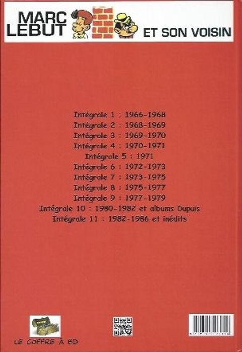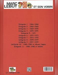 Onzième et dernier album de la réédition chronologique de toutes les aventures de Marc Lebut. Il reprend les dernières planches parues dans Spirou, l'album "Le voisin porte-veine", 4 planches inédites en français et une histoire oubliée dans les précédents volumes. Un index indiquant pour chaque planche où elle est parue dans Spirou, Robbedoes, les albums Dupuis et l'intégrale Coffre à BD termine l'album. Une présentation réalisée par Gilles Ratier de la série et de des auteurs débute l'album.