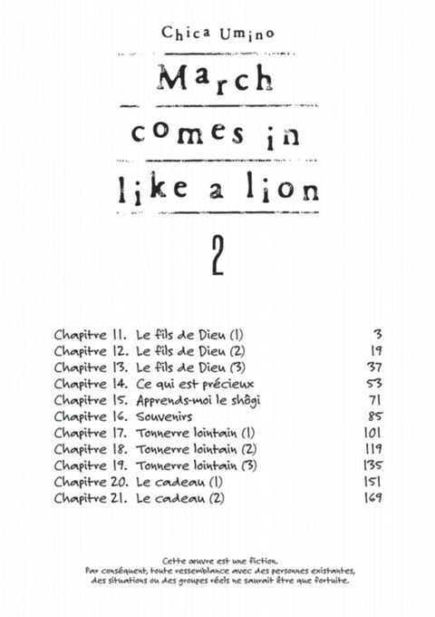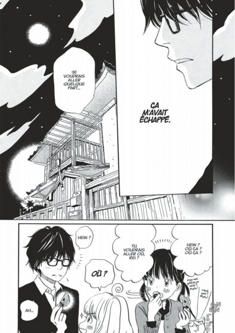 Rei, 17 ans, est un joueur professionnel de Shogi (jeu d'échec version japonaise). Mais Rei est aussi un adolescent meurtri par la mort de ses parents et de sa petite soeur. Alors qu'il vit une vie de solitaire, il fait la rencontre de trois soeurs qui vont lui redonner le goût à la vie. A leur contact il va petit à petit ouvrir les yeux sur lui-même et sur les personnes qu'il rencontre sur son chemin. Il s'ouvre au monde mais découvre aussi la difficulté du chemin qu'il a choisi de suivre.