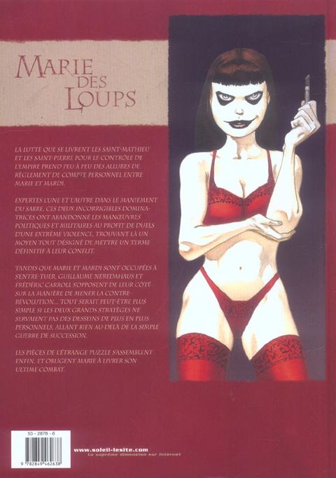 Entre complots et trahisons, Marie semble n'être que le jouet de son destin... La lutte que se livrent les Saint-Pierre et les Saint-Mathieu prend lentement, mais sûrement, la forme d'un règlement de compte personnel entre Marie et Mardi. Les manoeuvres politiques et militaires ont depuis longtemps cédé la place à des duels d'une violence extrême : experte l'une et l'autre dans le maniement du sabre, elles trouvent là, un moyen tout désigné de mettre un terme définitif au conflit qui les oppose. De leur côté, Guillaume, Général, et Frédéric, chef des Légitimistes, s'opposent sur l'art et la manière de mener la contre-révolution. Tout serait sans doute plus simple s'ils ne nourrissaient pas des desseins beaucoup plus personnels...