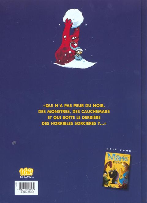 Fantômes, vieilles momies et monstres suceurs de têtes partagent le quotidien de Marie. Ce n'est pas facile tous les jours d'être une petite fille rêveuse au milieu de ces affreux. Mais lorsqu'on connaît mieux les Znous, les Chtocs ou l'Ogre végétarien, on s'aperçoit qu'ils sont plutôt sympa. Marie Frisson nous emmène dans un pays hanté par toutes sortes de monstres qui ne l'effraient pas, bien au contraire ! Cette petite fille haute comme trois pommes possède un caractère de peste super mimi et mène tout ce petit monde à la baguette. Un personnage craquant, un pays merveilleux, le tout servi par un dessin original et poétique, font de Marie Frisson une bande dessinée charmeuse et drôlement frissonnante, entre Tim Burton et Alice au pays des merveilles.