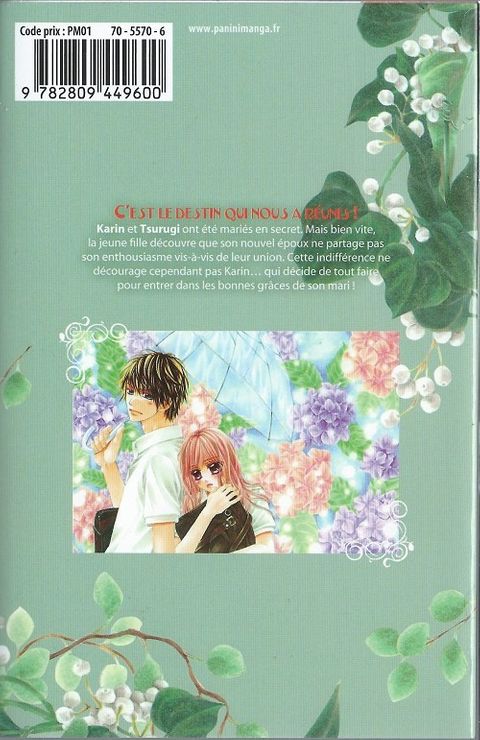 Karin et Tsurugi ont débuté leur vie « conjugale » dans les pires circonstances, mais cela ne veut pas dire qu'ils ne peuvent pas arranger tout cela ! C'est du moins ce que s'imagine Karin qui se raccroche à son optimisme sans faille ! Son mariage doit rester secret, mais Rinrin, son meilleur ami a le droit de savoir. Ce qui va provoquer bien des heurts ! Kanan Minami poursuit sur sa lancée, les mésaventures de Karin vont vous amuser au plus haut point !