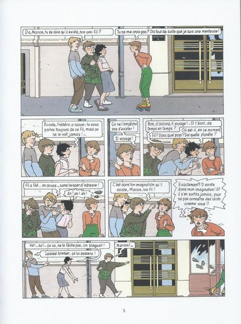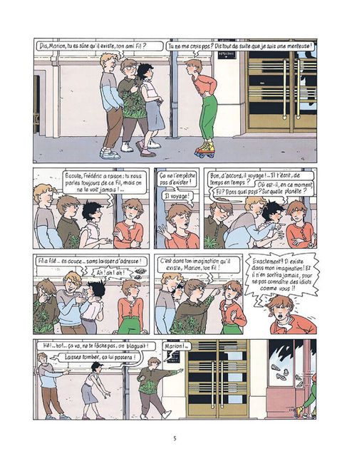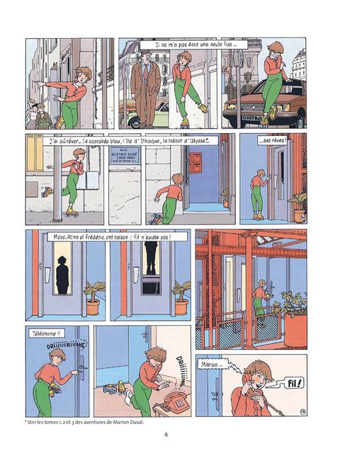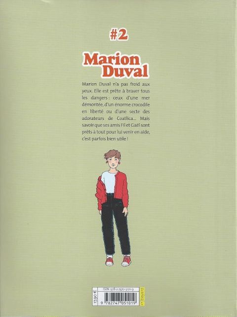Marion est la fille d'Alexandre Duval, journaliste chez Superhebdo. Lorsque son père chasse les scoops, il arrive aussi qu'il fasse de curieuses rencontres... comme celles de la belle et mystérieuse Esther et de son fils Fil ! Amoureux, Alexandre ? Heureusement, Marion veille au grain et mène l'enquête ! Tenace, courageuse, futée, sensible, généreuse... Et profondément attachante. Marion deviendra-t-elle aussi votre amie ? Deuxième volume, et trois nouvelles histoires de Marion ! Dans la première, la jeune fille découvre le premier époux d'Esther, qui la retient prisonnière avec Fil en bordure de Loire. Dans la propriété, le danger rôde notamment sous la forme d'un énorme crocodile affamé... À peine remise de ses émotions, Marion embarque pour la Bretagne, enquêtant sur un mystérieux manuscrit d'un auteur mort depuis des siècles. Véritable trouvaille ou machiavélique arnaque ? Enfin, Marion et son père fait la connaissance du père de Fil, violoniste et... Membre d'une sombre secte !