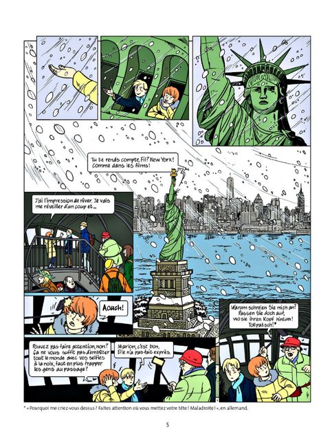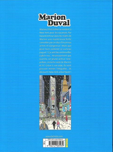 Quand Marion, Fil et Esther se rendent à New York pour les vacances, il faut évidemment qu'une enquête les y attende. Marion trouve par hasard un drôle de colis et se retrouve poursuivie par des inconnus armés et dangereux ! Avec l'aide de Fil et de Juanito, un acteur newyorkais, la jeune fille va mener l'enquête... Car le colis contient un disque dur abritant la vidéo de l'agression d'un homme d'affaire new yorkais ! Entre politiciens, hommes d'affaires et femmes de ménage, à qui Marion et Fil vont-ils pouvoir se fier pour rétablir la vérité ? Qui a agressé Philipp Calumney ? Encore une fois, les vacances de Marion ne seront pas de tout repos ! Mais rassurez-vous : elle adore ça ! Suite des one-shot de Marion Duval, avec notamment un toilettage graphique poussé du personnage de Marion !