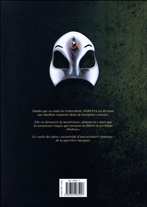 Retrouvez les aventures de la guerrière masquée dans une intégrale regroupant le tome 0 et les tomes 6 à 8 de la série de référence d'heroic fantasy. Marlysa voyage à travers le monde pour participer à des joutes de duellistes. Sur sa route, elle se porte au secours d'une diligence avec à son bord, une mystérieuse vieille femme. Poursuivies, elles trouvent refuge à Campion, où se déroule une compétition. Mais Marlysa ignore la véritable nature de cette femme appelée « femme-vie » ? Qui est-elle ? Et pourquoi est-elle traquée ?