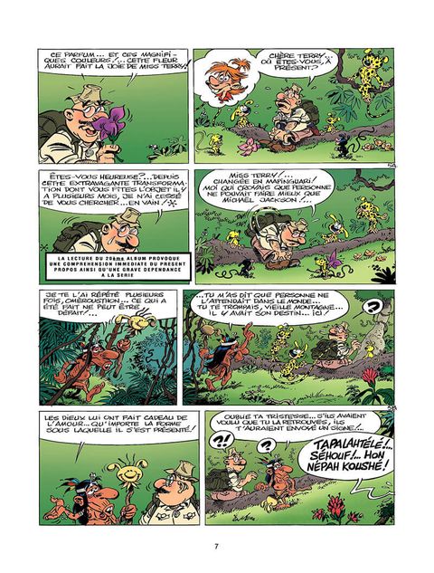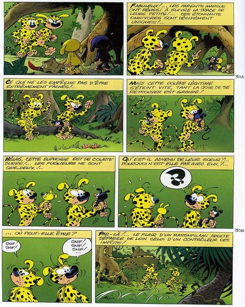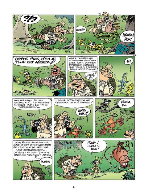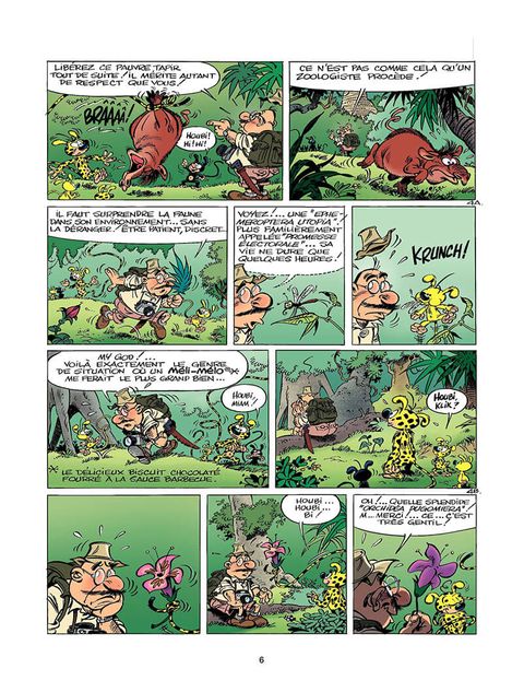 Une menace plane sur la forêt palombienne. De la terre sacrée des Indiens Chuchotas, voisins des Chahutas, parviennent les rumeurs les plus alarmistes. Un monstre rouge aux énormes dents jaunes, manifestement enragé, saccagerait tout sur son passage. L'éminent zoologiste Houston part à sa recherche au coeur de la jungle pluviale, suivi à son insu par les turbulents petits marsus.