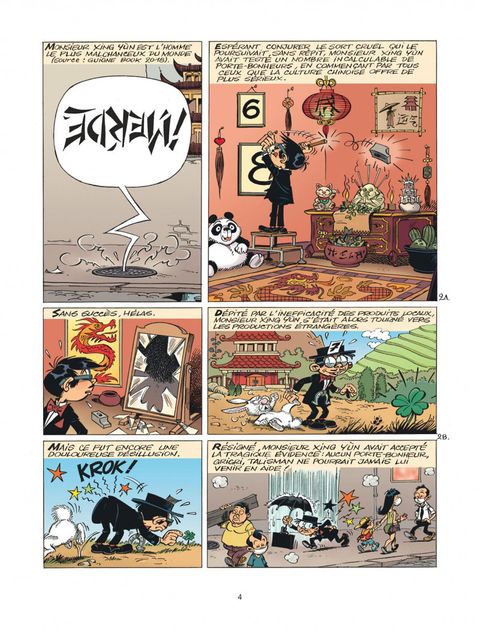 Monsieur Xing Yun est un citoyen chinois ordinaire, menant une vie ordinaire dans une ville ordinaire... Or, depuis le jour de sa naissance, le malheureux est accablé d'une terrible malédiction : il est l'homme le plus malchanceux du monde ! Ayant testé, sans succès, d'innombrables talismans, amulettes, grigris et autres porte-bonheurs, et abandonnant tout espoir face à la fatalité, l'infortuné monsieur Xing Yun s'est retiré dans un monastère ordinaire où un vénérable moine lui confie un secret extraordinaire : "Il existerait, cachée quelque part de l'autre côté du monde au plus profond d'une impénétrable jungle, une créature jaune tachetée de noir dont les poils seraient la plus efficace source de chance promise à leur heureux propriétaire." Fort de cette révélation inespérée, monsieur Xing Yun prend une décision : à partir de ce jour, aucun obstacle ne pourra le détourner de sa quête extraordinairement obstinée, trouver un honorable marsupilami pour lui arracher quelques-uns de ces précieux poils, synonymes d'une chance peu ordinaire ! De la Chine à la Palombie se prépare dès lors une rencontre mémorable entre l'homme et la légende, entre la chance et l'infortune, entre les deux forces contraires du destin.