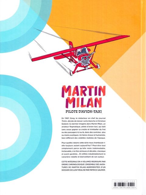 Les 200 pages que contient ce volume sont réparties comme suit : - dossier de 31 pages par Patrick Gaumer, - "Martin Milan, pilote d'avion-taxi", 7 planches, - "Hélice au pays des merveilles", 7 planches, - "L'En-cas de malheur", 7 planches, - "Grand concours de voltige aérienne", 5 planches, histoire inédite en album, - "Le Maboul du boulon", 5 planches, - "Le Scribe du ciel", 5 planches, - "L'Oiseau migrateur", 6 planches, - "Destination guet-apens", 30 planches, - "Les Clochards de la jungle", 44 planches, - "Le Chemin de nulle part", 12 planches, - "Églantine de ma jeunesse", 20 planches.