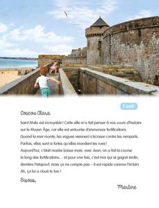 Quel dommage ! Clara, la meilleure amie de Martine, s'est cassé la jambe alors qu'elles devaient partir en vacances ensemble en Bretagne... Pour surmonter sa déception, Martine prend la décision de lui écrire une carte postale chaque jour, à chaque étape de son voyage. Rennes, Cancale, Saint-Malo, la côte de Granit rose, la forêt de Brocéliande, Belle-Île-en-mer... C'est certain, Clara ne perdra aucune miette de ce grand périple ! À retrouver en fin d'album : deux recettes pour apprendre à faire ses crêpes et son caramel au beurre salé !