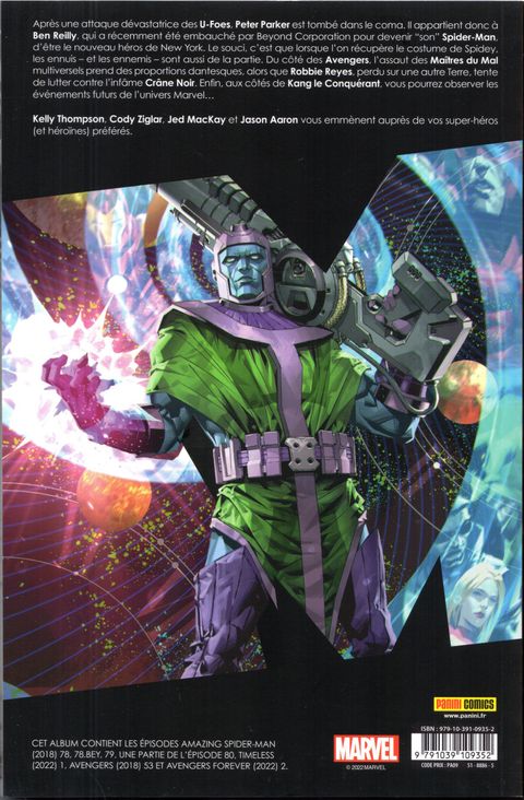 Que vous réserve l'univers Marvel pour les douze prochains mois ? Qui peut mieux répondre à cette question que Kang le Conquérant ? Quand le futur qu'il a eu tant de mal à créer est menacé, le voyageur temporel doit se transporter dans l'avenir proche pour comprendre ce qu'il s'est passé. Y a-t-il un lien avec la lutte des Avengers contre les Maîtres du Mal à travers les réalités ? Quant à Ben Reilly, maintenant qu'il a repris le costume de Spider-Man, le voici qui affronte Morbius ! Les fans qui suivent au plus près la continuité des super-héros Marvel ne manqueront pas ce rendez-vous. En plus d'Amazing Spider-Man, Avengers et Avengers Forever, cet album propose un épisode spécial et important : le one-shot Timeless qui s'intéresse à Kang, le vilain qui va faire trembler les héros des films Marvel dans la Phase 4. Les lecteurs vont aussi apprendre ce qui les attend pour les prochains mois !