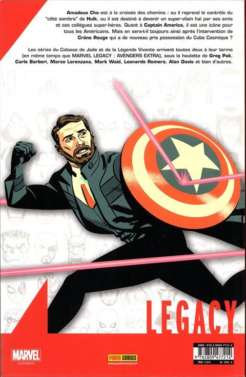 Dernier numéro ! Hulk fait face à ses coéquipiers, ses amis, sa famille et surtout à lui-même. Amadeus Cho en sortira changé à jamais. Et dernière saga futuriste du Captain America de Mark Waid.