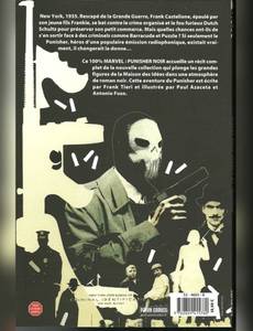 Chaque album de la nouvelle gamme «noir» de Marvel est porté en triomphe par les lecteurs. Les super-héros à la sauce polar rencontrent un très beau succès en librairie. Cette fois-ci, c'est le tour du Punisher vu par Frank Tieri (Wolverine, Deadpool) et Paul Azaceta (Captain Marvel). Nous sommes dans les années 20 face à une mafia surpuissante dirigée par le caïd Dutch Schultz qui a déjà pas mal de fil à retordre avec le gouvernement et ses « collègues » mafieux tels que Lucky Luciano ou Al Capone. C'est donc la cerise sur le gâteau quand un justicier solitaire coiffé d'un masque à tête de mort vient faire des ravages dans ses rangs !