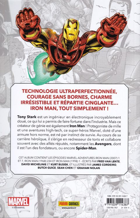 Milliardaire égocentrique, play-boy dévergondé, fabricant d'armes, Tony Stark voit sa vie basculer lorsqu'il est pris en otage par des terroristes résolus à mettre la main sur la technologie de Stark Enterprises. Pour s'en sortir, il crée une armure invincible qui lui permettra aussi de racheter ses erreurs en défendant les innocents, sous l'identité d'Iron Man ! Iron Man a 60 ans ! C'est bien sûr l'occasion idéale pour lui offrir un album MARVEL-VERSE (il n'y avait pas encore eu droit !). Comme à l'accoutumée pour cette collection, nous avons sélectionné plusieurs aventures emblématiques du personnage, susceptibles de le faire connaître à un large public !