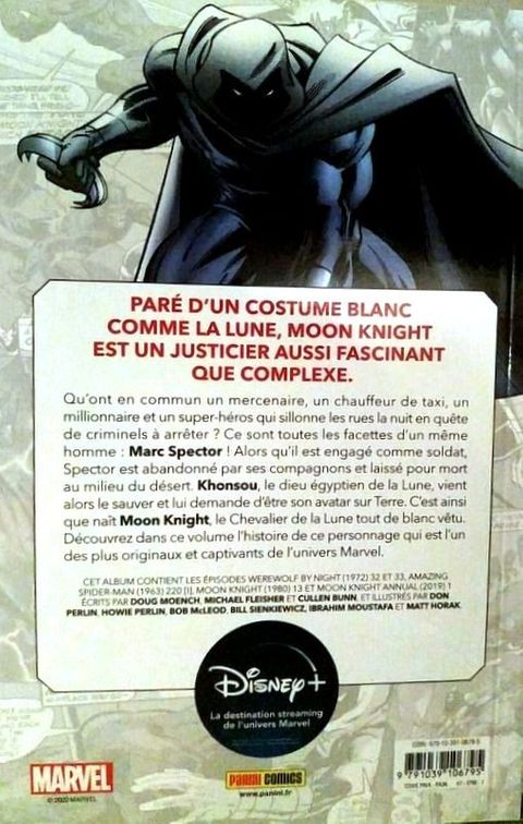 L'ancien mercenaire Marc Spector a été laissé pour mort et ressuscité par Khonshu, le dieu égyptien de la lune. Il est désormais Moon Knight et combat le crime malgré d'importants troubles psychologiques. Découvrez quatre de ses aventures. À l'occasion de la sortie de la série Moon Knight sur Disney+, et comme à chaque nouveau lancement sur la plateforme de streaming, nous vous proposons un recueil d'histoires indépendantes et accessibles pour apprendre à mieux connaître le personnage.