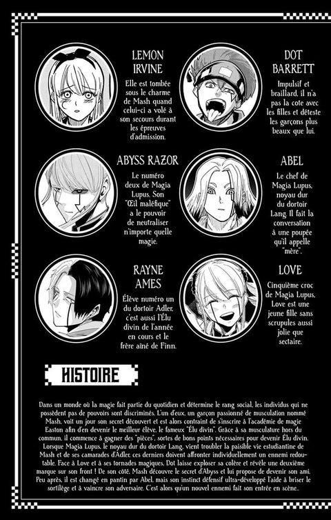 Alors que Mash et ses camarades célèbrent leur victoire face à Magia Lupus, un sbire de la mystérieuse organisation «Innocent Zero» vient gâcher la fête. Abel apprend alors à ses dépens que ce nouvel ennemi utilise une magie noire très puissante... Mais il en faut plus pour effrayer Mash qui contre-attaque grâce à ses muscles d’acier ! Malheureusement, cet affrontement ne sera pas sans conséquence puisque, plus tard, il se retrouve convoqué devant une commission d’enquête à cause d’une rumeur à son sujet... Parviendra-t-il à garder son secret caché ?