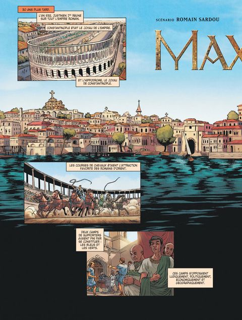 À Constantinople, la vie politique et sociétale est bipartite. Deux factions s'affrontent : les Bleus et les Verts. À l'origine, simples clans de supporters qui rivalisaient le temps des courses de chars, cette opposition s'est étendue à toute la société. En 532, pendant une course, les deux chars de la faction verte sont poussés à l'accident par les Bleus. Lors des troubles qui s'ensuivent, le leader politique des Bleus est assassiné. Les troubles menacent de basculer en révolution. Aussitôt, l'empereur Justinien fait convoquer au palais Maxence, chef de ses services secrets personnels. Il le charge d'enquêter sur l'assassinat. Sans perdre de temps car, en ville, les massacres ont déjà commencé.