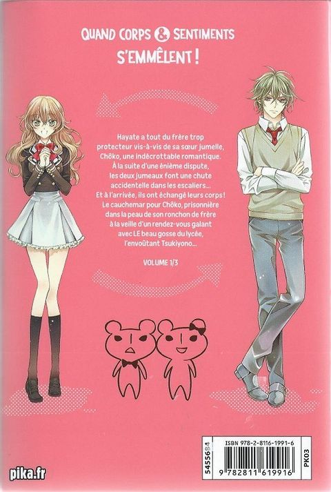 Hayate a tout du frère trop protecteur vis-à-vis de sa soeur jumelle, Chôko, une indécrottable romantique. À la suite d'une énième dispute, ils font une chute dans les escaliers... Et à l'arrivée, ils ont échangé leurs corps ! Le cauchemar pour Chôko, prisonnière dans la peau de son ronchon de frère à la veille d'un rendez-vous galant avec LE beau gosse du lycée, l'envoûtant Tsukiyono...