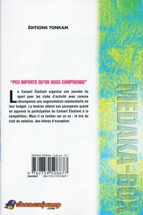 Le Conseil Étudiant organise une journée du sport pour les clubs d'activité avec comme récompense une augmentation substantielle de leur budget. La tension atteint son paroxysme quand on apprend la participation du Conseil Étudiant à la compétition. Mais le Conseil va tomber sur un os : trois élèves d'exception, le trio du club de natation.