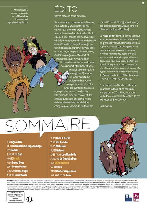 Un Méga Spirou exceptionnel édité à l'occasion du centenaire de Dupuis, réunissant la crème des auteurs de BD dans 192 pages de pur plaisir de lecture !