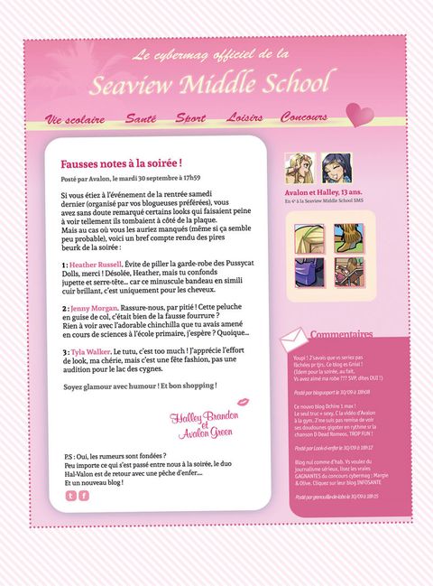 Halley surprend Avalon en train d'embrasser l'élu de son coeur, Wade, le beau chanteur du groupe de rock du collège ! Pour se venger, Halley va se faire élire capitaine des pom-pom girls à la place de son amie. Fidèles à leurs habitudes, c'est par blog qu'elles vont régler leurs comptes ! Assister à la Fashion Week de Los Angeles sera-t-il suffisant pour réconcilier les deux meilleures ennemies ?
