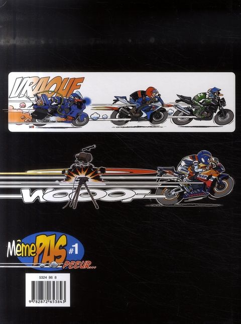 Joe Bar Team a initié le genre, on retrouve ici le monde des motards, des gags désopilants, un dessin percutant inspiré du style Franquin. Les motards « pur et dur » y trouveront leurs bécanes préférées croquées avec précision et le sens du détail ! Tous passeront de super moments de plaisir et de franche rigolade.