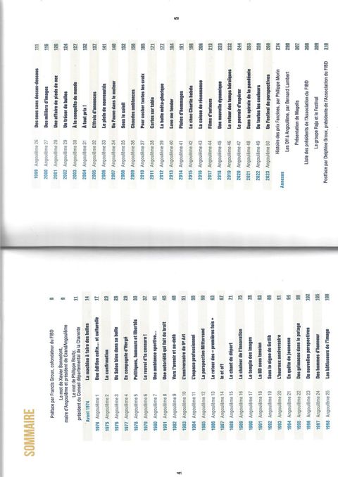 Scénaristes, dessinateurs, coloristes, éditeurs, fanzineux et journalistes le savent bien : l'odyssée angoumoisine est toujours ponctuée de surprises... Faits politiques, petites phrases, concerts de dessins ou partenariats transmédias, et d'un Grand Prix à un autre, le FIBD fourmilled'anecdotes connues ou ignorées : cet ouvrage les retrace de manière chronologique, dans une perspective illustrée permettant de circonscrire doublement le Festival d'Angoulême comme un laboratoire de création et un écrin mémoriel.Deux chapitres abordent l'histoire du Festival off ainsi que celle du Prix Fanzine, l'une des originalités du Festival. Une longue histoire, « à suivre »
