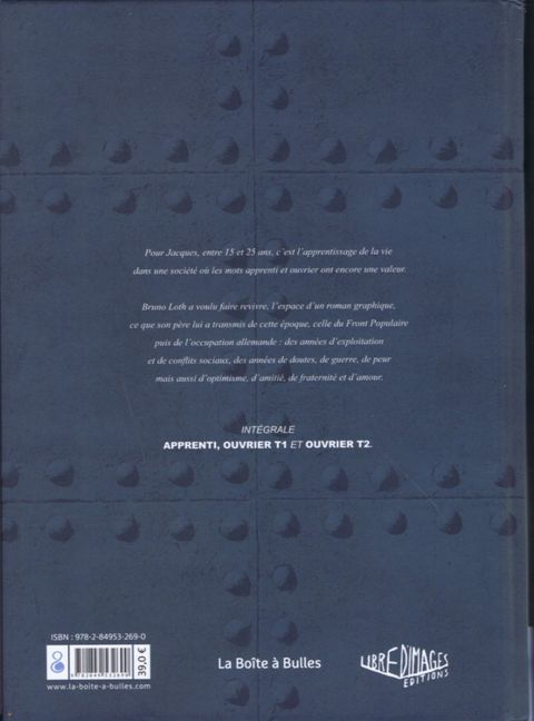 Nous sommes en 1936 et un vent d’espoir souffle sur le monde ouvrier avec la victoire du Front Populaire aux élections. Apprenti dans les ateliers de construction navale de Bordeaux, Jacques ne profite pas moins de son adolescence, croquant avec insouciance la vie — à pleines dents et en dessins sur son carnet — en ces temps de premiers congés payés… Mais bientôt, c’est la mobilisation générale puis la guerre. Réformé, Jacques n’y prend pas part. La débâcle de 1940 ramène à Bordeaux les troupes allemandes. Commence alors le temps de l’Occupation, du couvre-feu, des rationnements, des dilemmes et des premiers amis disparus… Mais faut-il pour autant cesser de vivre pleinement ? L’intégrale d’une saga tout public de très haute tenue, directement tirée de la vie du narrateur, le propre père de Bruno Loth.