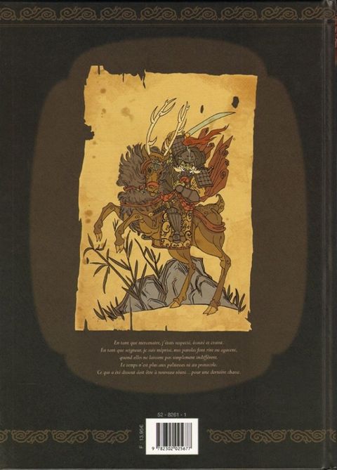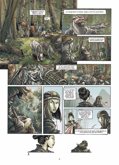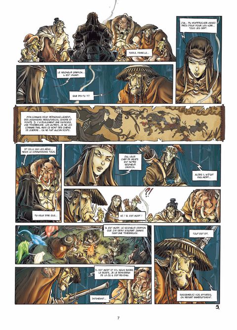 À l'Est, le mur menace de céder. Le seigneur Griffon, lui, a juré vassalité aux ténèbres. Sa horde d'assassins pourchasse ses anciens compagnons et la confrontation est désormais inévitable... Mais alors que la meute du Griffon franchit la porte menant à l'antre de Ju-Oeil-de- Dragon, chacun de ses membres doit affronter sa part d'obscurité, et la vaincre, avant de pouvoir rencontrer l'esprit-Dieu est espérer sauver les 9 provinces menacées de destruction.