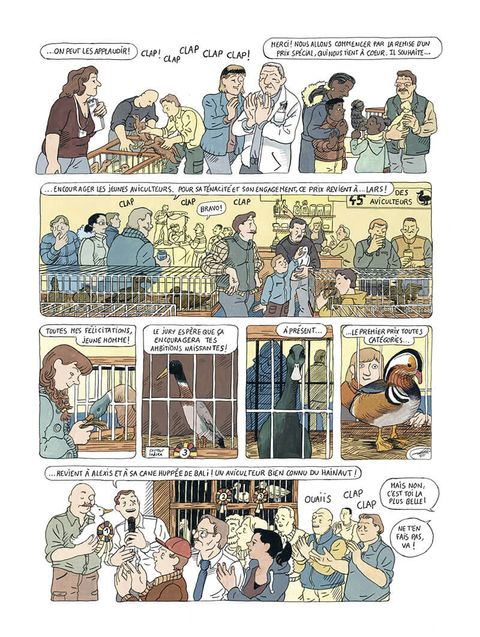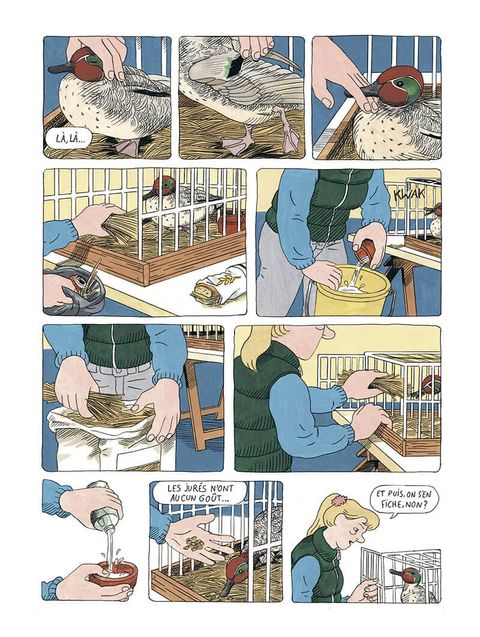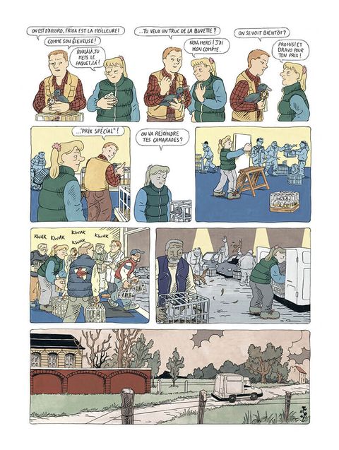 Merel, âgée d'une quarantaine d'années, est une femme libre vivant sans mari ni enfants. Partageant son quotidien entre l'élevage de canards, le club de football local et l'écriture, elle mène une vie d'harmonie et d'amitiés. Mais tout se dérègle lors d'une soirée au cours de laquelle elle fait une blague sur la sexualité du mari de l'une de ses voisines. Une blague qui va faire courir le bruit que Merel couche avec tous les hommes de son petit village de Flandre... L'ensemble de la communauté va dès lors se liguer contre elle, faisant de sa vie un enfer... Clara Lodewick, jeune autrice flamande, propose ici un premier album plein de maturité graphique et scénaristique, une peinture sociale de la ruralité flamande à la fois juste et rare. Son ton et son dessin en couleurs directes vous rendront ses personnages immédiatement proches !