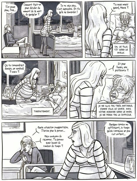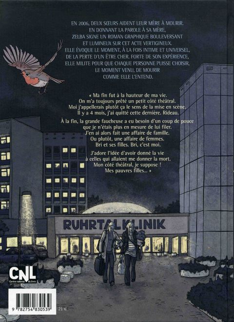 En 2006, deux soeurs aident leur mère à mourir. A sa demande, elles donnent la mort à celle qui leur a donné la vie. Après Dans le même Bâteau, Zelba signe un roman graphique bouleversant et lumineux sur cet acte vertigineux. Elle évoque le moment, à la fois intime et universel, de la perte d'un être cher. Il aura fallu 13 ans à Zelba pour raconter cette histoire, croiser ses souvenirs avec ceux de sa soeur, changer certains noms et romancer en partie. Elle aborde de front l'euthanasie, ou la mort assistée, sujet qui suscite des débats contradictoires en Europe. Forte de son expérience, elle milite pour que chaque personne puisse choisir, le moment venu, de mourir comme elle l'entend. A quel moment les soins palliatifs se transforment en acharnement thérapeutique ? Combien de temps peut-on décemment prolonger l'agonie ? Peut-on décider de mourir ? L'euthanasie, ou la mort assistée, est une question délicate à laquelle les pays d'Europe répondent de manière très différente. C'est en tout cas un sujet sensible qui parle à tout le monde. Le jour de la mort de Vincent Lambert, le 11 juillet 2019, Zelba décide de raconter les derniers instants de la vie de sa mère et dans quelles circonstances sa soeur et elle ont accepté de l'assister à mourir. Cette histoire, Zelba la porte en elle depuis 13 ans et avait tenté plusieurs fois de la raconter avant de renoncer. Ce jour-là, elle comprend qu'il est temps de témoigner et partager cette expérience douloureuse et universelle.