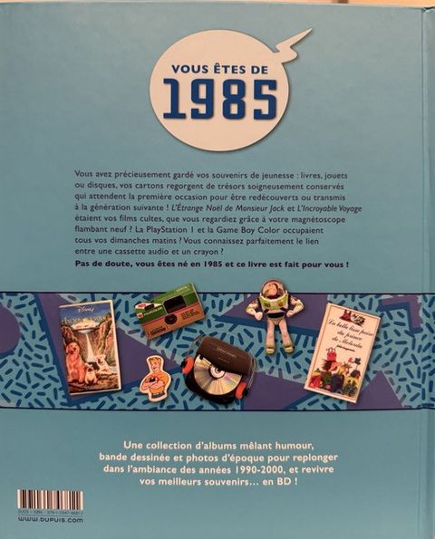 Enfant de 1985 ! Vous êtes devenu adulte, mais avez précieusement gardé vos souvenirs de jeunesse dans votre coeur... et vos cartons, qui regorgent de vos jouets préférés, livres fétiches et vêtements d'un autre temps ! Retrouvez l'ambiance des années 1990 et 2000 à l'occasion d'un vide-grenier, auquel vous convient les membres d'une famille qui vont partager avec vous les événements, jeux ou saveurs qui ont marqué leur jeunesse. Vous avez laissé tomber votre Tamagotchi pour le premier jeu Pokémon (team Bulbizarre forever !) sur Game Boy Color ? Vous êtes incollable sur les noms des Chevaliers de Bronze comme sur ceux des Cat's Eyes ? Et quand on vous dit « film culte », vous pensez Titanic ? Pas de doute, vous êtes né en 1985 et ce livre est fait pour vous ! Entre humour et nostalgie, retrouvez vos années 1990 et 2000 grâce à de nombreuses iconographies d'époque qui vous feront revivre vos meilleurs souvenirs... en BD !