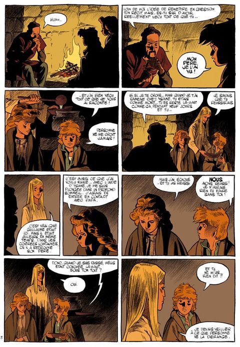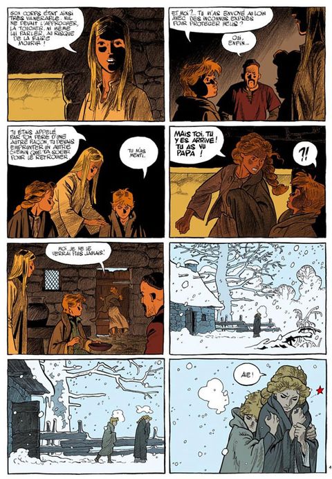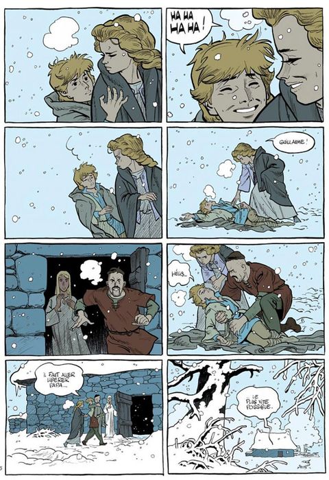 Le rêve cède la place à l'action Après neuf jours d'un profond sommeil durant lequel il a atteint le pays de vérité et vu une dernière fois son père défunt, Guillaume se réveille enfin aux côtés de sa soeur Hélis. Pour les deux adolescents, l'heure n'est plus à la rêverie. Le temps presse. Escortés par le chevalier de Brabançon, ils prennent la route de la maison familiale, bien décidés à libérer l'âme de leur père, coincée entre deux mondes. Sur place l'attendent leur mère et son nouveau compagnon, l'ambitieux messire de Brifaut. Hélis soupçonnent les deux amants d'être les assassins de leur père... Autant le tome 2 de "Messire Guillaume" nous avait transportés dans une sorte de réalité rêvée, dans un monde fantastique peuplé de créatures étranges et de monstres, autant le tome 3, "Terre et mère", nous ramène à une réalité plus terrestre - même si elle reste bien sûr romanesque -, en parfaite résonance avec le tome 1. Les auteurs, Matthieu Bonhomme et Gwen de Bonneval referment de magistrale manière le récit de la quête désespérée de Guillaume, refusant de croire à la mort de son père.