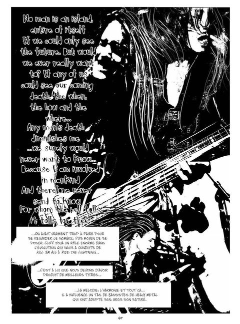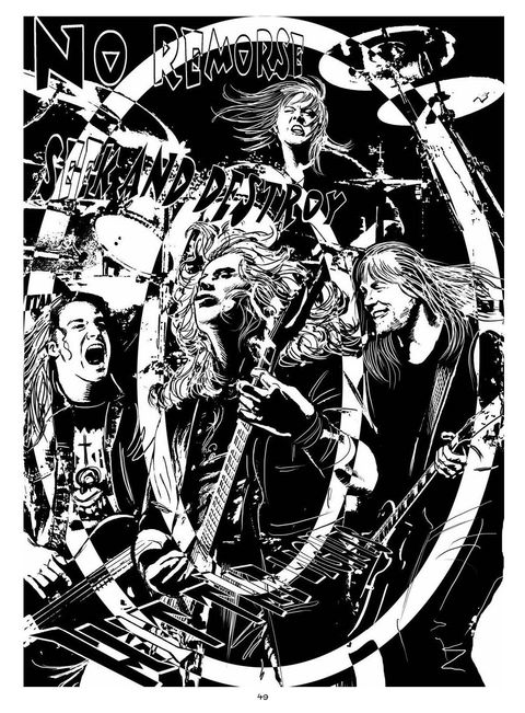 L'histoire du plus grand groupe de Thrash Metal est loin d'être banale. L'incroyable succès commercial du Black Album, les gigantesques tournées mondiales, la mort tragique de Cliff Burton dans un accident de bus, la mémorable controverse du procès Napster... Les hauts et les bas de la carrière du légendaire quatuor méritaient d'être dessinés ! Brian Williamson et Jim McCarthy ont su parfaitement saisir en noir et blanc le sulfureux roman de Metallica.