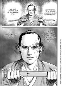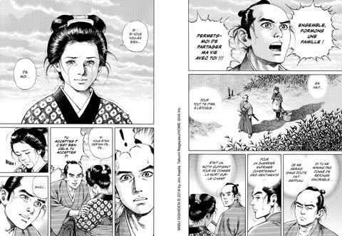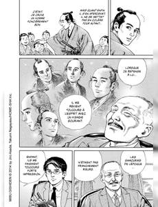 Après le tenancier, c'est au tour d'un des anciens élèves de Kan'ichirô Yoshimura, l'entrepreneur Sukaraba, de livrer sa vision de ce samouraï hors-normes. L'homme se rappelle bien le jour du départ de cet instructeur qui a renié son clan dans l'espoir d'offrir à sa famille une vie plus digne. Une désertion qui n'est pas sans conséquences, car c'est hélas à cette dernière, restée dans le nord, d'en payer le prix. Yoshimura parti, son fils se retrouve ainsi couvert d'opprobre et doit faire face au jugement intraitable de ses camarades.Le rideau se lève sur un nouveau chapitre poignant de la vie de Yoshimura, tiraillé entre son devoir et son amour pour sa famille.Deux maîtres du manga, Takumi Nagayasu et Jirô Asada, vous présentent un nouveau mythe bouleversant autour du Shinsen Gumi.