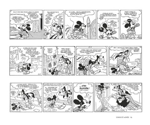 Toutes lesaventures de Mickeypar Gottfredson ! Floyd Gottfredson est celui qui a hissé le « standard character » Mickey au faîte de sa popularité en bande dessinée. Un auteur dont l'efficace simplicité du trait et le génie graphique continuent d'inspirer les artistes du monde entier dont Régis Loisel.AprèsL'Âge d'or de Mickey Mousequi vous proposait une sélection des meilleures aventures de Mickey par Floyd Gottfredson, cette nouvelle collection réunit enfin, et de manière chronologique, l'intégralité de l'oeuvre du maître! Publiée en noir et blanc à raison de deux tomes par an, dans des albums luxueux à l'italienne pour respecter le format des strips d'origine, cette nouvelle édition est le rendez-vous incontournable des amoureux du travail de l'auteur, autant que des fans de Mickey de la première heure !