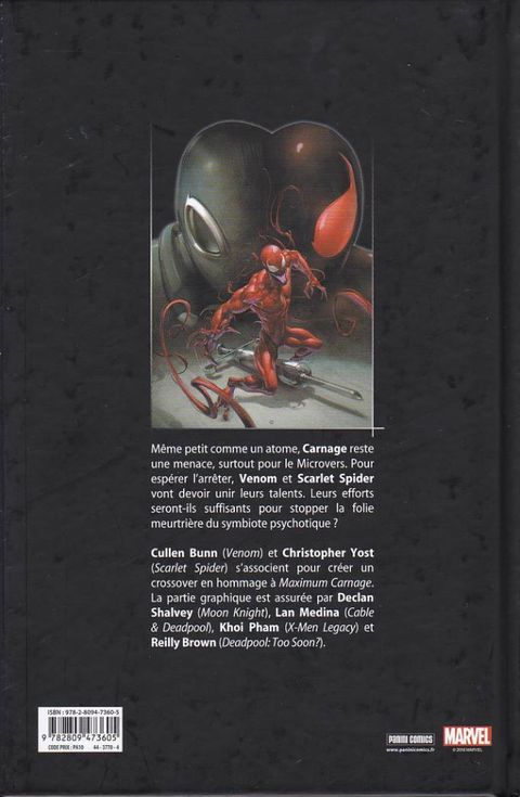 Carnage ayant été réduit à la taille d'un atome s'attaque au Microverse. Venom et Scarlet Spider unissent leurs forces pour le vaincre.