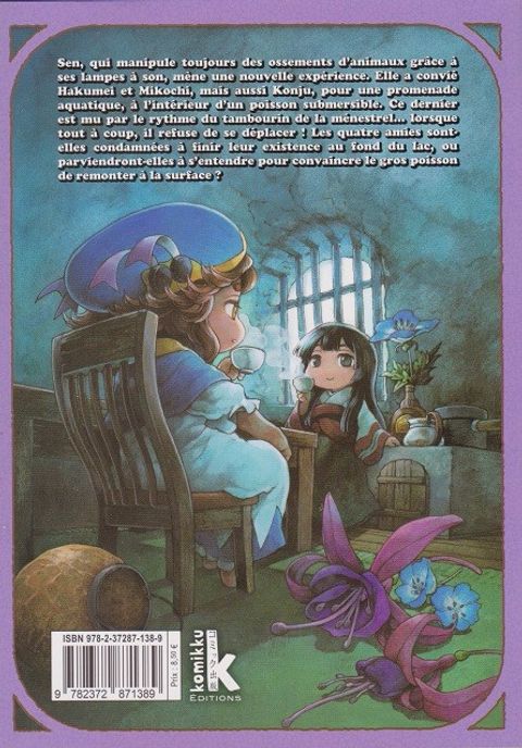 Sen, qui manipule toujours des ossements d'animaux grâce à ses lampes à son, mène une nouvelle expérience. Elle a convié Hakumei et Mikochi, mais aussi Konju, pour une promenade aquatique, à l'intérieur d'un poisson submersible. Ce dernier est mu par le rythme du tambourin de la ménestrel. lorsque tout à coup, il refuse de se déplacer ! Les quatre amies sont-elles condamnées à finir leur existence au fond du lac, ou parviendront-elles à s'entendre pour convaincre le gros poisson de remonter à la surface ?