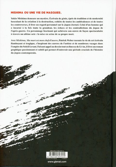 « Ma mort est mon chef-d'oeuvre »Pour beaucoup, Yukio Mishima reste un mystère. Écrivain de génie, épris de tradition et de modernité, basculant de la création à la destruction, esthète de toutes les ambivalences et de toutes les controverses, il livre un regard sans précédent dans le paysage culturel japonais et mondial. Celle d'un homme qui a incarné à la fois toute la grandeur, les échecs et les contradictions du Japon de l'après-guerre. Un personnage fascinant qui achèvera son oeuvre de façon spectaculaire à travers un ultime acte : la mise en scène de sa propre mort.Avec Mishima, Patrick Weber raconte la vie de cet artiste flamboyant, s'inspirant en partie de son célèbre livre Confessions d'un Masque. Faisant appel au dessin tout en finesse de Li-An, il livre un roman graphique passionnant et subtil qui permet d'entrevoir une période cruciale de l'histoire du Japon contemporain.