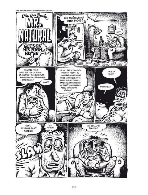 Mr. Natural est une des créations les plus connues de Robert Crumb, peut-être la plus sympathique. Il appartient à cette faune d'escrocs, évangélistes, faux prophètes et charlatans de tout poil, qui hante les États-Unis et que décrivent Herman Melville, Sinclair Lewis ou Harry Crews. Né on ne sait où, on ne sait quand, Fred Natural mène une existence picaresque, tour-à-tour guérisseur, magicien, chef d'orchestre, taulard, trimardeur et chauffeur de taxi en Afghanistan, avant de réapparaître en 1967, dans les pages de Yarrowstalk, bien décidé à guider l'Amérique vers son salut. Entre Charles Manson et Aimee Semple McPherson, ce maître zen cynique et roublard arpente les rues de Chicago et de San Francisco, prêchant le renoncement aux biens matériels tout en cherchant un débouché commercial pour ses aphorismes. Traqué par des disciples crétins, qui exigent qu'il leur révèle le sens de l'univers, Mr. Natural les maltraite avec un sadisme bon enfant et, après un « Va te faire foutre ! » définitif, les fuit dans le désert, comme il sied à un véritable prophète. Nous retrouvons donc Mr Natural, et son premier disciple Flakey Foont, pour ce deuxième et dernier opus consacré aux histoires des années 1980 et 1990. Des histoires reprenant les thèmes chers à l'auteur, encore plus déjantées, mêlant diablerie, sexe et. spiritualité ?